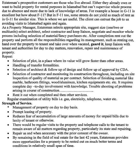 [Home] [About Estateman] [Property For Sale] [Hot Properties] [Wanted By Estateman] [Property Management] [About Pakistan] [Useful Links] [Area Maps] [Affiliated Agents] [Feedback] [Sitemap & Search]